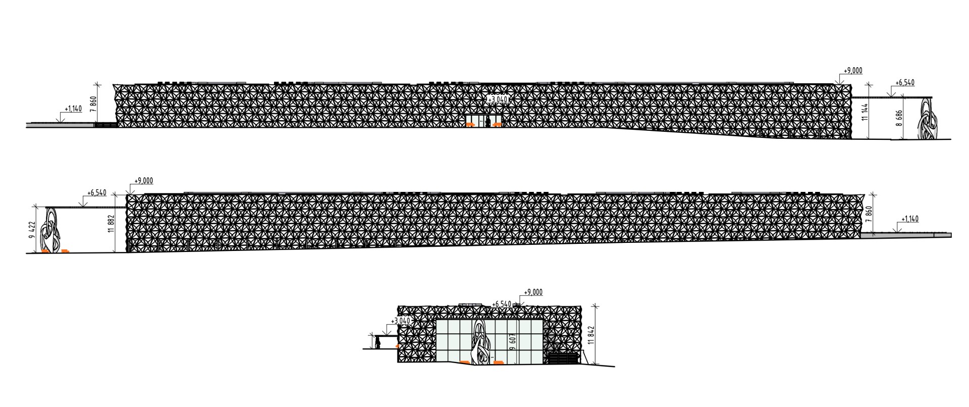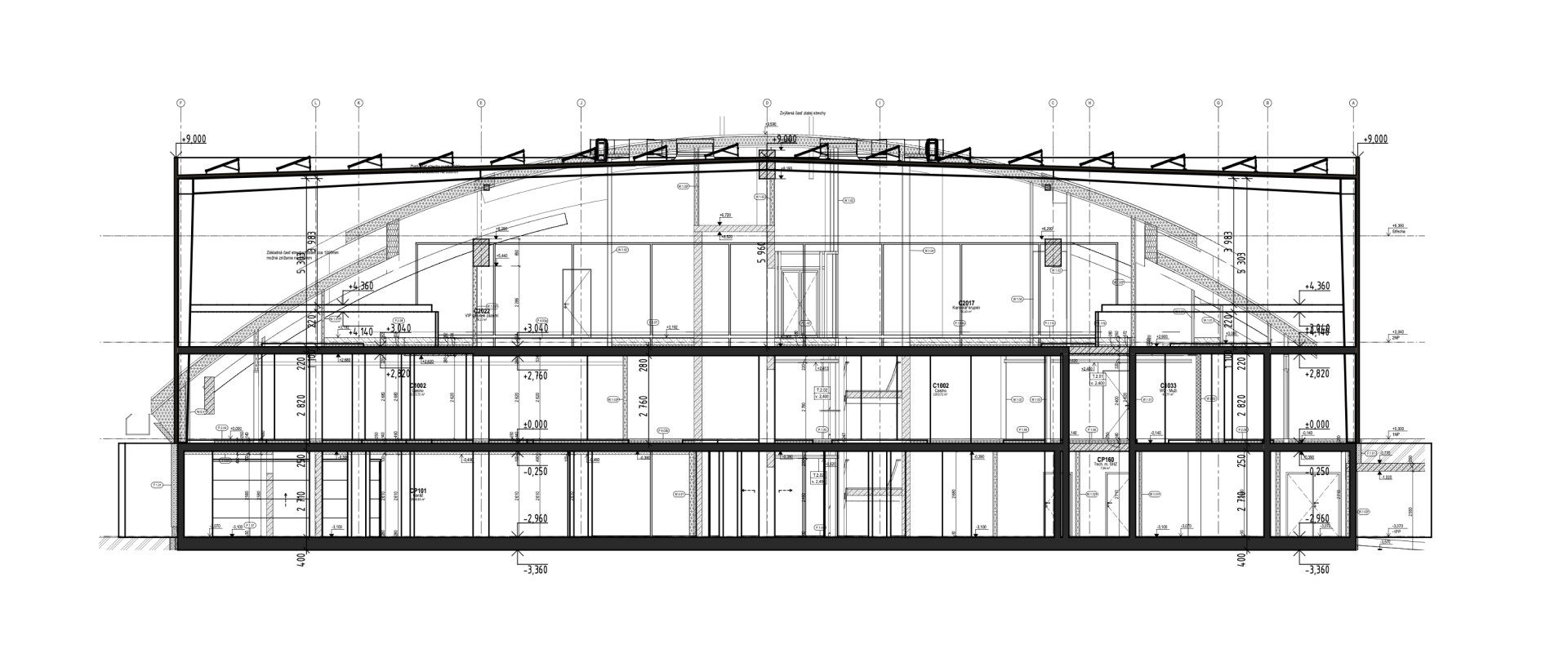 Obloukové zastřešení zmenšuje užitnou plochu objektu směrem od 1.PP nahoru. Využitím nového řešení se dosáhne lepšího